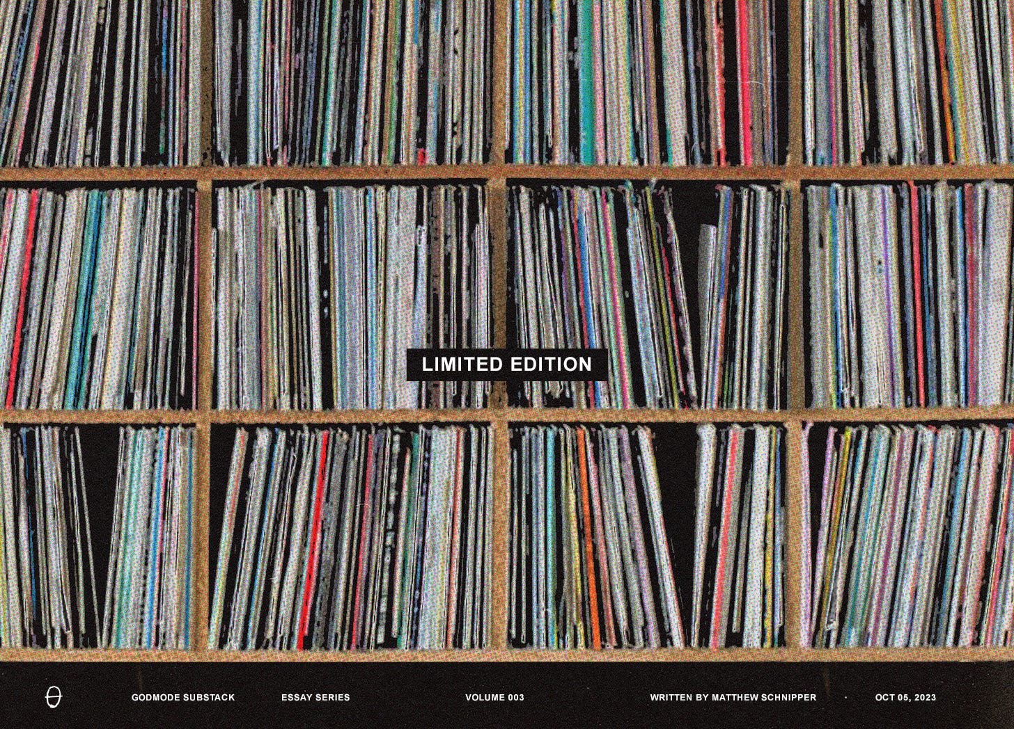 So where’s the sweet spot? What makes the difference between a stream and a sale? A mix of factors has begun to remake my purchasing habits. I’m inspired by a touch of FOMO and a desire to participate. I still have a record collection, but I’m not sure what I’m doing is collecting. I’m still building a library, but it’s more an idiosyncratic reflection of my own tastes, not a presumptive cannon. I acquire, pretty simply, what I might want to put on at home.